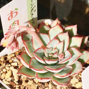 縁の赤が可愛いです💕 蕾が2つ✨✨ 成長点はへんてこりん😅 この先どうなるのかな?