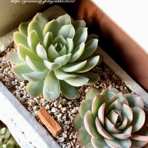 葉挿しにと葉っぱをいただいてから3年ちょっと。3号鉢のエケベリア ムーンガドニス綴化。もちろんお気に入り。でも、これがお店に並んでいても買わないと思う。うちで育ったから大切なわけで…。 何日間かカバー写真に使ってみたけれど、やっぱり全体を見てもらいたくて投稿〜