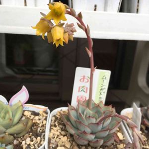 春ので、、、エケベリアのお花シリーズ 今年最初のこしょこしょは、ムーンガドニスちゃん❤️ 黄色い大きなお花がしっかり立ち上がっています。 花粉は控えめかな??