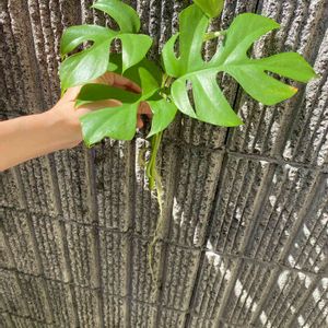 ヒョローと伸びたので水耕栽培で根をつけ植え替えたモンステラ☺️💞 しっかり根付いてます🥰💕💕💕