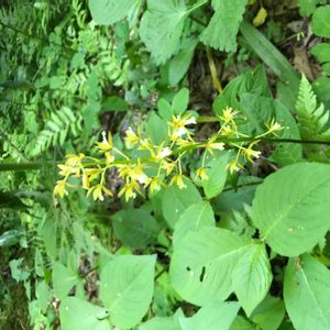 広島県、吾妻山③ 半日陰に咲いてました! 葉っぱをかき分けると、蘭の葉のようでした!