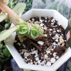 ピーチホリデーさんです☘️ 右下の小さな写真の子を切って挿し🌱 しばらくしたら脇芽が出ました😄 植え替え記録🗒