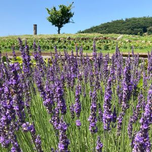 信州国際音楽村🎵 青空とラベンダー🪻の良い香り💜 小高い場所なので吹く風も爽やか🎐 花穂が長くラベンダースティック作りにも最適🪻 リボンで🎀可愛いらしく✲゚。.(✿╹◡╹)ノ☆ 5,000株のラベンダー🪻 週末8・9日はラベンダー祭り🪻