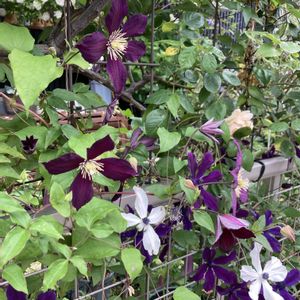 今日のクレマチス♡ ①②バフビューティーのフェンス ミケリテ パルセット アフロディーテエレガフミナ 名緒 シーボルティー まとまりなく入り乱れております🌿 ③アイノール ④マシュマロ