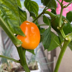 虫に秘密の菜園その4🌱パプリカがいい色になりました😁まだ緑色のが後ろに控え楽しみが😊