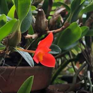 マキシラリア・ソフロニチスが真っ赤な花を咲かせました❣️。今日から室内で管理します🏠。