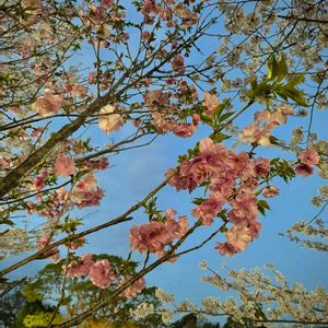 長崎の繁華街、浜の町で出会った桜の花🌸 小ぶりの白っぽい花びらの桜の木に、一枝だけ濃いピンクの花が咲いていて、目を引きました😊 こんもりとした枝に、みっしりとお花が付き、かわいくて美しくて、なんとも言えない風情🥰🌸 こんな桜の花もあるんだと、飽きず眺めていました…😊💕🌸