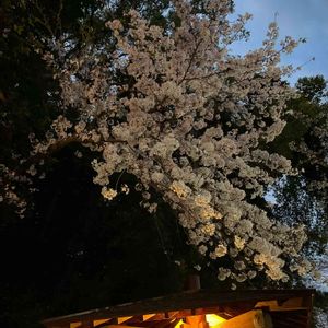 夜桜とあずまや。 優しい光に浮かぶ桜。