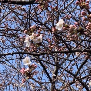 近所の公園では、ちらほら桜🌸が咲いていました@上水公園 春ですね😊