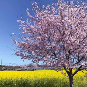今日は汗ばむくらいの暑い日でした😆 地元の桜も昨日の雨と今日の暑さで桜吹雪となっていました🌸🌸🌸 ここはムーミンバレーパークから南へ下った辺りの田んぼの一角🌸 菜の花と桜ってよく似合いますね〜🥰💕