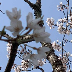 桜の種類はとても多いので、何という桜か分かりませんが咲いていました。 淡い色の一重の桜🌸