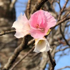 冷たい北風が吹く中、通勤途中で一輪だけ咲いていた桜の花🌸 もうすぐ春なんですね。 朝から良いことありました♪