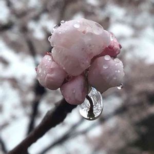 昨日の写真です📸 桜の蕾ちゃんに、雨の雫がついてて綺麗でした〜(∩´∀`∩)💕✨