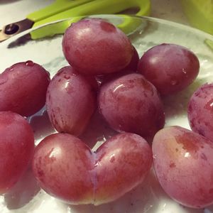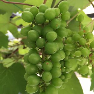 ブドウでもこんな形になるんだな〜(^-^) 種無しで食べやすいブドウです。 実家の父作。