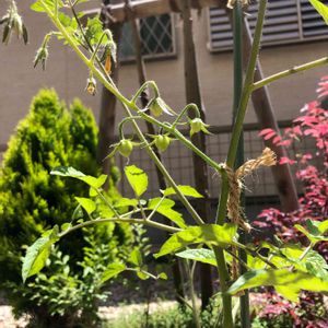 なんか上にいくほど花がガクから落ちてる!😥 ちょっと調べてみたけど受粉できなかった?のかな??去年はこんなに花落ちなかったと思うけどなんだろ… とりあえず咲いてる花を揺らしてみた… 連続摘芯とか捻枝とかするといいのかな???しかし先っぽにみんな花芽がついてて勿体なくてつめない🤣