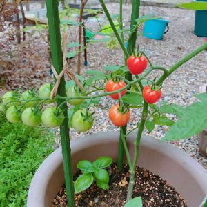 ミニトマト🍅実の重みで地面につきそう これはどう固定するべきなのか