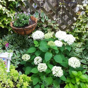 おはようございます☺️🎶☂️ 梅雨入り☔️🐌したようですね😌🍃 今週いっぱいもって欲しかったです😆💦 今朝のアナベルさん🍃 開花してして白色になりました🤗🍃 右下の紫陽花さん、多分、挿し木した子ですが、鉢植えは、肥料あげないと花芽出ないでないんですね~💦 もう1株咲いてない子います😂