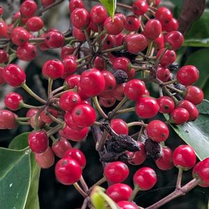 ピラカンサの事もあり、ネットを被せた千両の実は大丈夫かな…と思って見に行きました😅 こちらは全く被害に遭ってなくてホッとしました🤗 ネットをめくって見ている間もすぐ近くで🐦⬛の鳴き声ごしたので、慌ててまた被せておきました😂