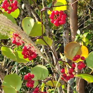 おはようございます😊 今日も温かくなりそうですね☀️ でも明日辺りからグンと気温が下がって、もしかしたら❄️も…😱 今日の陽射しを有効に使わないと!ですね🤗 今日のお花サルトリイバラ(猿捕茨)☘️🔴🔴🔴☘️ 私は写真持って無いなぁ〜と思ってましたが、そう言えば先月お出かけ先でサルトリイバラの真っ赤な実に出会って撮ってました🎶🤗