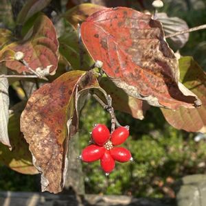 ハナミズキの真っ赤な実が お花の様にくっついていて可愛い❤️