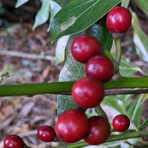 〜マルバノホロシ〜 ナス科ナス属 🏷️真っ赤な実 🏷️グリーンアクセサリー♪ 🏷️2021年同期の会NO.9 花名由来 葉っぱに切れ込みが ないことから″丸葉″ 赤い実がホロシ湿疹に似ている(◔‿◔) ゆふいん