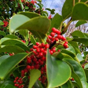 1⃣2️⃣3️⃣クコ[枸杞] ナス科クコ属の落葉低木 日本全国に分布 葉や実が食用、茶料、果実酒、薬用などに、根は漢方に用いられます 実は粥の具や杏仁豆腐のトッピングにもされます 4️⃣サンシュユ[山茱萸] (ハルコガネバナ、アキサンゴ) ミズキ科、属 中国、朝鮮半島原産 実が1個だけ残っていました 🏷真っ赤な実 参加させてください