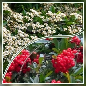 今日のお花 ピラカンサ 5月に咲いていた真っ白なお花と11月の真っ赤な実🤍🤍❣️❣️