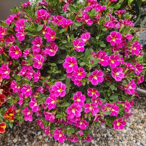 カリブラコア スーパーベルブリリアントスター (なんと長い名前😆) 夏に仲間入りして 一度✂️で切り戻しをしたら その後ま〜〜〜ったく花を咲かせてくれず😂 少し寒くなってきた頃から チラホラ咲き始めて💗 とっても嬉しい🤗 この先は室内で、いつまで咲いてくれるかな🤭