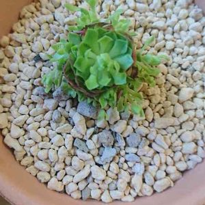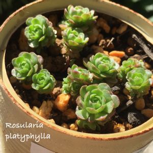 そばちょこさんの手描き鉢に ロスラリアプラティフィラと 端っこにセドイデス ぎゅうぎゅうに押し込んだ 増えるかなぁ〜