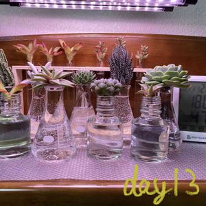 多肉植物の水耕栽培13日目。 今日は暖かい日でした(*´ω`*) 明日は近所の園芸屋さんにまた行ってみようと思います(*´꒳`*)