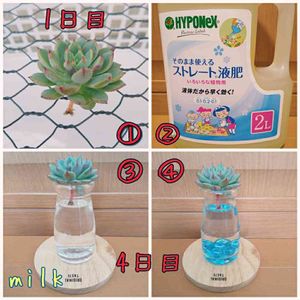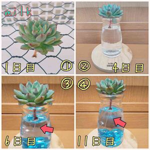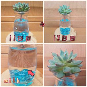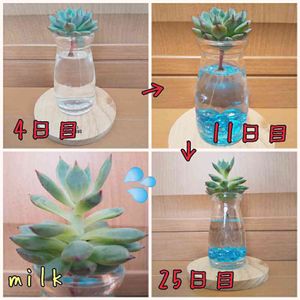 多肉植物の水耕栽培10日目。 仙台は久々に雨でした(´ω`) ハオルチアクブシエさんからも少しずつ根が出てきました(*´ω`*)