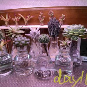 ナウシカはじめました😆 なんのこっちゃ😑ですね😺 「多肉植物の水耕栽培」デス😉 2週間前からお水につけた子 真っ白な根っこが出てきました ガラス容器にこんな状態の子が 日々増えつつあります😅 ずらり並んだ試験管 そう、ナウシカの腐海の研究室 みたいな😁😁😁😁