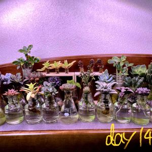 多肉植物の水耕栽培、祝150日目! 仕事から帰宅したら部屋の温度が30℃超えていましたι(´Д`υ) 200日まで持たずに全滅…しないように気を抜かずに管理していこう(´∀`)