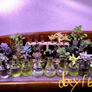 多肉植物の水耕栽培161日目。 どようびどようび〜٩( 'ω' )و 水換えしたっ(●´ω`●) 休みは寝ても寝ても眠し(_ _).。o○