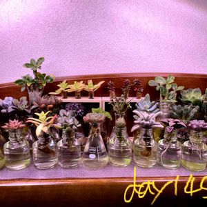 多肉植物の水耕栽培142日目。 昨日疲れすぎて上げてなかった(´∀`) 水換えしました(●´ω`●) 湿度が高いこの時期は多肉植物にも悪影響となってるみたいなので気を使いながら育てたいと思います(´・∀・`)