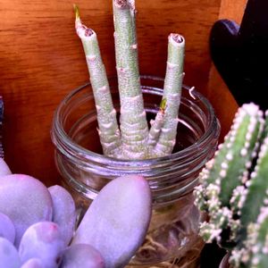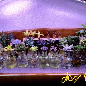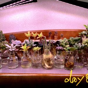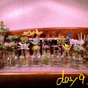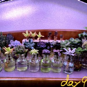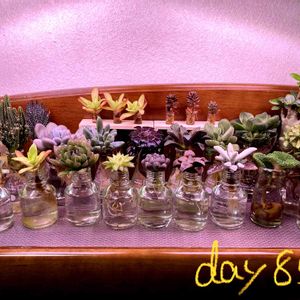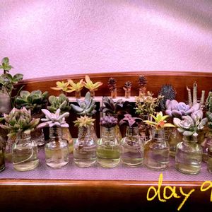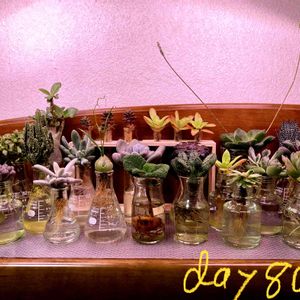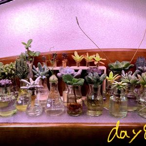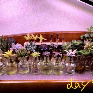 多肉植物の水耕栽培84日目。 ハオルチア氷砂糖さんとアデニウム ソマレンセさんが仲間入り! ソマレンセさんを入れる瓶がなかなか合わなかったので明日100均にでも行って買ってこようと思います。 あとエケベリアに引き続きセンペルビウムを諦めました。 徒長してしまってダメでした(´・ω・`)