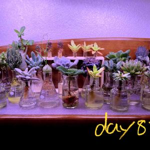 多肉植物の水耕栽培86日目。 自分は基本的に土曜日に水換えをして世話しているのですが、 月曜から金曜までに仕事で溜まってしまったストレスが、土曜の水換えと世話によって発散されているような感覚を覚えるようになってきました。 だから土曜日に水換えができないとまたそれでストレスが溜まってしまうことになってますね。 植物の世話=自分の世話ということなんでしょうか。