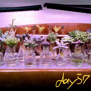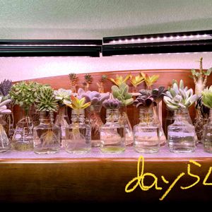 多肉植物の水耕栽培57日目。 日曜の夜は多肉達を眺めながら酒を飲みます(´ー`)