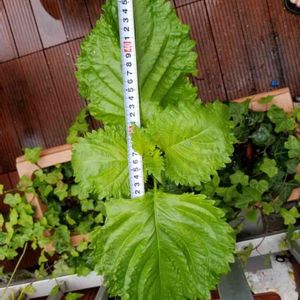 こぼれタネからいつの間にか凄い葉っぱに成長‼ 22cm シソおむすび 美味しそう🎵