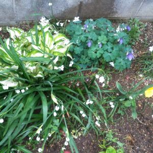 オダマキが色付いて来ました(*˘︶˘*).。.:*♡ 名前を教えて頂いたギボウシ、大きくなって来ました。 そして庭中に大量にあるスノーフレーク 1本だけ咲いているチューリップ で、手前に見切れているのが、余ったサラダ菜と豆苗を再収穫したあともう一度伸びて来たのを植えたもの(笑) 写っては居ませんが、もう少し右側に芽が出てきたのを埋めたじゃがいもが2本(笑) メチャクチャな配置になっていますよ😭 この庭は私が手を入れる前は、日陰に植えなきゃならない花はキチンと日陰に配置されていたり、恐らく四季を通してバランス良く色々な植物が育つ様に考えて作られたお庭だと思います。 最近、畑化が激しいのでこの庭を作った人に申し訳ない気持ちです…😅 もう、完璧に畑になっている1角は仕方ないですが、出来るだけプランターに野菜は植えようと花を見ると誓うのですが、苗が余ったらまた植えちゃうんだろなー。