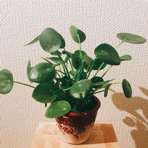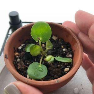 ピレア ペペロミオイデスの子株。 少し前に植え替えしてる途中に子株を折ってしまい、しかも茎が短く⁉︎ほぼ無い状態に折れたので浸からない様に水を毎日少し足しながら様子を見てたら根っこが何本か出てくれました。 そろそろ良いかな?早いかな? でもググッたら根っこ出たら土に植え替える、って書いてあったし… って事で、小〜さい鉢に観葉植物の土で植えました。 これは正解かな? 失敗して学ぶ、ってのはいつもの事だけど これだけは枯れてから「失敗」ってのは嫌だーー🧟♀️
