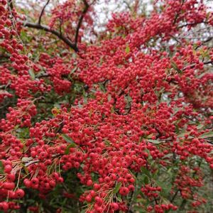 Pyracantha 和名:常磐山査子 近くの公園で沢山の実を付けて枝が重そうです😊