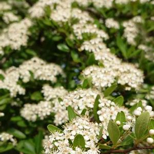 ピラカンサ/常磐山査子(トキワサンザシ) バラ科トキワサンザシ属の常緑低木。ピラカンサはトキワサンザシの仲間の総称で、日本では主にトキワサンザシ、ヒマラヤトキワサンザシ(別名 カザンデマリ)、タチバナモドキの3種類がピラカンサと呼ばれている。いずれも1年中細い枝に艶やかな濃緑色の小さな葉をつけ、春には木に雪が降り積もったように白い花が枝を埋め、秋から冬にかけて枝がたわむほど果実が実る。果実は美味しそうに見えるが毒があり、まとめて食べれば鳥も毒にあたる。3種類とも耐寒性、耐暑性に優れ剪定にも耐える。 ・常磐山査子(トキワサンザシ)→西アジア原産、赤い果実は扁平で小さめ、葉は靴べら形。 ・ヒマラヤ常磐山査子(別名 花山手鞠(カザンデマリ))→ヒマラヤ原産、赤い果実は3種類の中で最も大きい、葉は細長い。 ・橘擬(タチバナモドキ)→中国原産、果実は黄橙色、果実の色と形がミカン科のタチバナに似るのが名の由来。 出典『樹木の事典600種』『葉っぱで見わけ五感で楽しむ樹木図鑑』