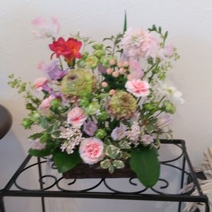 アレンジメントの レッスンで作ったものです。 ②はアレンジメントを 頼まれたものです🌺💐 お花で心が癒され 楽しい時間です💛💚💗💙