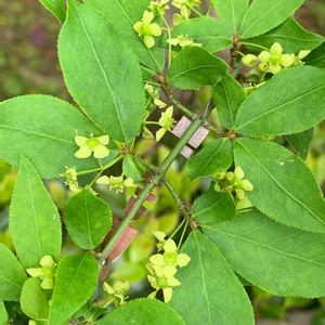 おはようございます😃 @森のくまさん から回答いただきました ナツグミのようです (ビックリグミ でしょうか?) 5月20日に撮る 今日(25日)大きさを見てきました。 長さ 1.5cmほどです。 赤い実がほとんどなくなっていましたが、上段のような実はまだ沢山ありました。 熟した実から採ったのでしょうね。