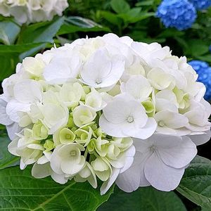 昨年白い🤍紫陽花が欲しくなり 見切り品のこの子を見つけました 名札も📛無くかすかな期待で 1年のその後 ライムグリーンから 日々変わっていくのが見えて ワクワクの毎日白い紫陽花に見えて来ました たぶん「ラグランジァ」かと思います