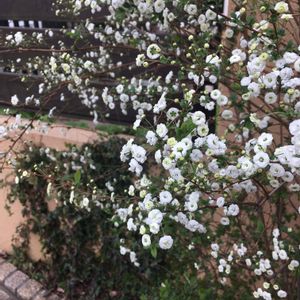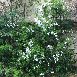 庭にある木なのですが、 名前知らなくて…💦 ビョーンと長く伸びています。 白くて小さな花かわいいです🌱