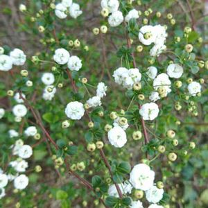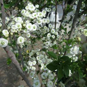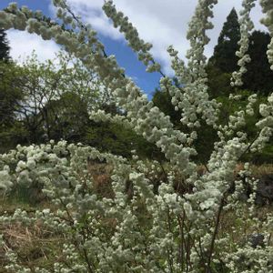 何年か前に苗木で購入したのですが、名前を忘れてしまいました。ユキヤナギのように白い小花がたくさん咲くのですが、垂れ下がる事なく上に伸びます。他で見ることがあまりないとおもうのですが、なんという花の名前でしょうか。