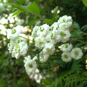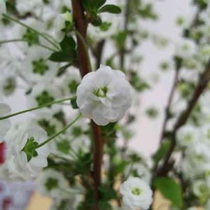 バラ科「シジミバナ」 🙄シジミかぁ💦こんなに可愛いのに微妙😔別名を調べたら「エクボバナ」❣️そう呼ぶことにしよう💕 遠くから見るとまるでユキヤナギです😊