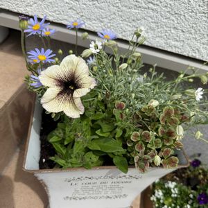 寄せ植え✻*˸ꕤ*˸*⋆。 今年は、プリムラジュリアンをお迎えするのはやめようと思っていましたが、こんなに優しいお色のジュリアンに出会ってしまいました💦 地植えしていたヒューケラドルチェは猛暑で全滅。 リベンジでいくつかお迎えしましたが、今回は鉢植えで育てようと思います。その一つ、シルバーデュークは寄せ植えにしました(*^^*) 後ろに写っているのは、長い夏からまだ元気に咲いているペチュニア・カプチーノ。さすがに今回の寒波は越えられないと思います。 これが見納め🥺 ありがとね💕︎